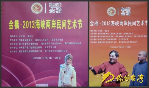你好臺(tái)灣網(wǎng)廈門10月23日消息 (記者 劉楊濤)一年一度的兩岸民間藝術(shù)節(jié)明日即將熱鬧開鑼。10月24日至28日,由文化部和國(guó)臺(tái)辦擔(dān)任指導(dǎo)單位,中華文化聯(lián)誼會(huì)、廈門市人民政府和福建省文化廳共同主辦的“金橋·2013海峽兩岸民間藝術(shù)節(jié)”將在廈門隆重開幕,兩岸藝術(shù)表演團(tuán)隊(duì)及專家學(xué)者約800人將同臺(tái)展示,相互切磋,齊心攜手共同弘揚(yáng)和推廣兩岸優(yōu)秀民間傳統(tǒng)藝術(shù)。