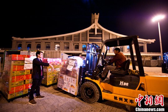 11月15日,裝載著580箱水果的“海峽號”高速客滾輪緩緩?fù)?科教栋那按a頭,這是平潭口岸首次進(jìn)口臺灣水果。據(jù)了解,該批臺灣水果共4980千克,貨值約6172美元,包含11個(gè)種類。中新社發(fā)念望舒 攝