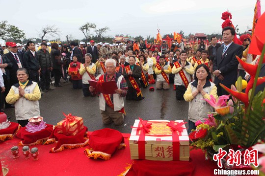 中午13時許,安座典禮開始,臺灣地區(qū)領導人馬英九、臺中市長胡志強、大甲鎮(zhèn)瀾宮董事長顏清標以及湄洲祖廟董事長林金榜等人出席典禮,向媽祖神像上香,敬獻祭典物品。馬英九在儀式結(jié)束后表示,媽祖在臺擁有眾多信眾,兩岸媽祖信眾交流對兩岸相互了解、兩岸和平都有很大的貢獻。