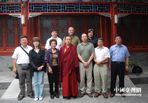 中國臺灣網(wǎng)6月30日北京消息 6月29日上午,參加京臺文化節(jié)的臺灣書畫家應(yīng)邀參觀了北京雍和宮。北京市東城區(qū)政協(xié)副主席、區(qū)委統(tǒng)戰(zhàn)部部長郭瑞敏、區(qū)委統(tǒng)戰(zhàn)部常務(wù)副部長、區(qū)臺辦主任關(guān)連寶、區(qū)民族宗教僑務(wù)辦公室主任閆燕接待了臺灣朋友。