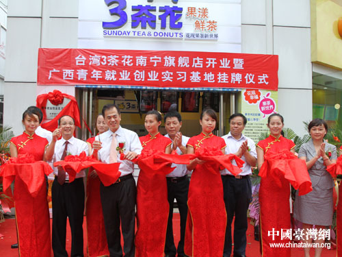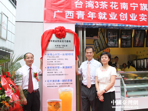中國臺灣網(wǎng)7月19日南寧消息 7月17日,臺灣3茶花南寧旗艦店開業(yè)暨廣西青年就業(yè)創(chuàng)業(yè)實(shí)習(xí)基地掛牌儀式在南寧舉行,這是共青團(tuán)廣西區(qū)委在臺資企業(yè)設(shè)立的第一個(gè)青年就業(yè)創(chuàng)業(yè)實(shí)習(xí)基地,也是不久前廣西自治區(qū)黨委書記郭聲琨率大型經(jīng)貿(mào)文化代表團(tuán)赴臺交流后落實(shí)的第一個(gè)成果。共青團(tuán)廣西區(qū)委、廣西青年聯(lián)合會、廣西臺辦、南寧市臺辦等有關(guān)部門代表及部分廣西青年企業(yè)家和大學(xué)生代表出席儀式。