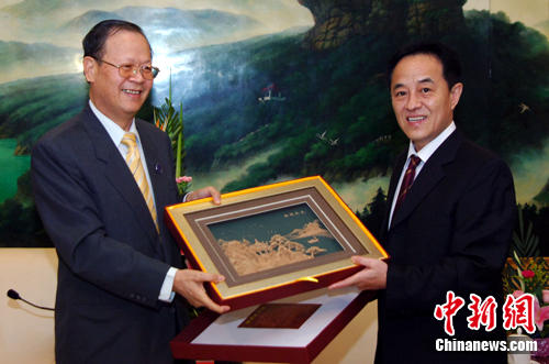 7月28日傍晚,中國(guó)最高人民法院副院長(zhǎng)、中國(guó)法學(xué)會(huì)審判理論研究會(huì)副會(huì)長(zhǎng)、二級(jí)大法官奚曉明先生(右)與海峽兩岸法學(xué)交流協(xié)會(huì)(臺(tái)灣)理事長(zhǎng)廖正豪(左)先生互換禮物。當(dāng)日中國(guó)最高人民法院副院長(zhǎng)奚曉明在福州福建會(huì)堂會(huì)見(jiàn)來(lái)自海峽兩岸的近二百名知名法學(xué)家、司法實(shí)務(wù)界人士,其中來(lái)自臺(tái)灣29名法學(xué)及司法嘉賓。海峽兩岸司法實(shí)務(wù)研討會(huì)即將在福州舉行。張麗君 攝