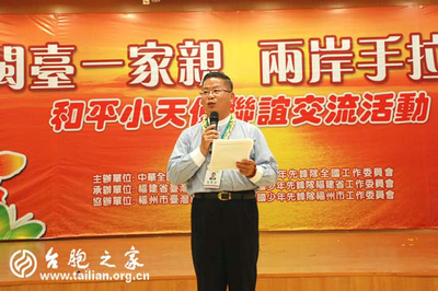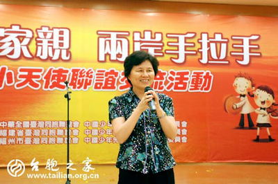 8月21日晚,閩臺一家親 兩岸手拉手第十二屆和平小天使聯(lián)誼交流聯(lián)歡會在福州舉辦。福建省副省長陳樺女士參加了此次聯(lián)歡會,聯(lián)歡會以兩岸小朋友自娛自樂的方式分別表演了精彩節(jié)的目和游戲。以兩岸孩子共同的文化表現(xiàn)獻(xiàn)愛心、盼和平的無暇童真,晚會由福建省臺聯(lián)黨組書記林衛(wèi)國主持,全國臺聯(lián)文宣部副部長宋歌、全國少工委校外教育部副部長王小軍、福建省臺聯(lián)副會長葉露昆、福建省臺聯(lián)副會長、福州市臺聯(lián)會長陳小凡、省臺聯(lián)秘書長張巖,臺灣中華企劃人協(xié)會理事長翁林澄團(tuán)長、臺灣創(chuàng)價(jià)學(xué)會未來部部長易汶杏副團(tuán)長、臺灣創(chuàng)價(jià)學(xué)會文教處處長洪玉柱、臺灣創(chuàng)價(jià)學(xué)會副秘書長謝美珠、臺灣創(chuàng)價(jià)學(xué)會文教處企劃部主任林藍(lán)娣等出席聯(lián)歡晚會。