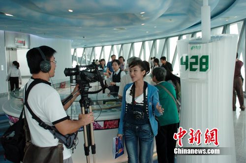 10月11日,來自臺(tái)灣中天電視《臺(tái)灣腳逛大陸》節(jié)目欄目的拍攝人員在新廣州電視塔107層,距地面428米處的廣州塔造型郵政箱前攝制節(jié)目,此前,該拍攝組已到廣州長(zhǎng)隆動(dòng)物園、廣州珠江啤酒廠等地方進(jìn)行了采訪拍攝。
