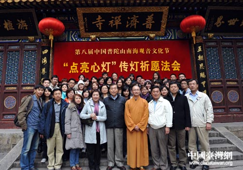 中國臺灣網(wǎng)11月4日舟山消息 11月3日,2010年上海世博會臺灣館館長邱揮立率臺灣館全體員工一行50余人來到浙江省普陀山觀光禮佛。