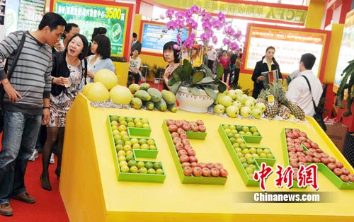 在臺(tái)灣展區(qū)顯要位置,主辦方設(shè)立了“ECFA主題展區(qū)”,展銷ECFA早期收獲清單中的農(nóng)產(chǎn)品吸引眾多參觀者觀展選購(gòu)。