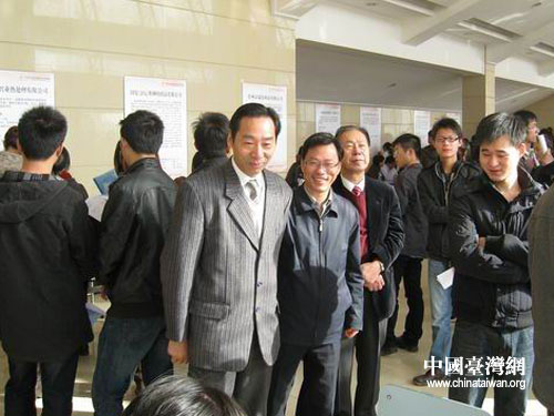 常州市臺(tái)辦主任許春元、常工院黨委書記張力航在“牽手教育,創(chuàng)造就業(yè)”2011屆畢業(yè)生專場招聘會(huì)現(xiàn)場。圖片來源:常州市臺(tái)辦