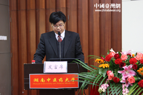 湖南中醫(yī)藥大學(xué)國際教育學(xué)院院長、港澳臺辦公室主任彭清華教授介紹對臺教育與交流情況(中國臺灣網(wǎng) 楊永青 攝)