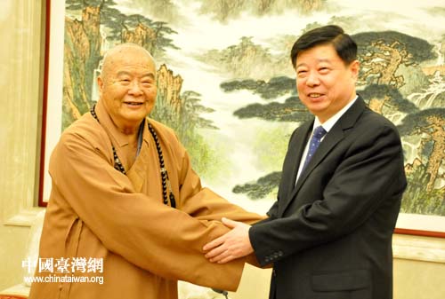 姜異康對星云大師一行的來訪表示歡迎。他說,多年來,山東十分重視與臺灣的交流合作,人員往來日益頻繁,經(jīng)貿(mào)合作不斷深化。星云大師是德高望重的高僧,多年來不辭辛苦,為推動兩岸關(guān)系和平發(fā)展與文化等領(lǐng)域的交流作出了積極貢獻。大師此行將在山東大學(xué)發(fā)表學(xué)術(shù)演講,并受聘為山東大學(xué)名譽教授。相信通過這些活動的開展,將會進一步密切魯臺聯(lián)系,推動魯臺交流不斷向前發(fā)展。