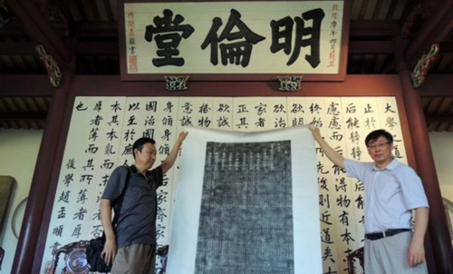 兩岸首次聯(lián)合舉辦“清代臺(tái)灣進(jìn)士專題展”將于2013年9月18日在臺(tái)南揭幕,來自北京孔廟和國子監(jiān)博物館復(fù)制碑帖于16日在臺(tái)南孔廟明倫堂率先亮相,見證科舉制度在臺(tái)灣的歷史。(北京市臺(tái)聯(lián)供圖)