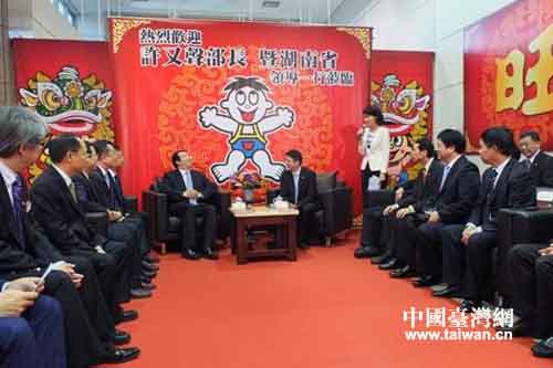 蔡紹中先生對(duì)許又聲一行赴臺(tái)的首站就造訪旺旺中時(shí)媒體集團(tuán),表示熱烈歡迎。旺旺作為一家在以湖南為起點(diǎn)而成長(zhǎng)壯大的企業(yè),多年來得到了湖南省委、省政府和相關(guān)地方部門的大力關(guān)心支持,他表示將進(jìn)一步提升湖南旺旺的生產(chǎn)規(guī)模和產(chǎn)品層次,為湖南經(jīng)濟(jì)社會(huì)發(fā)展作出更大貢獻(xiàn)。