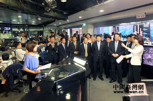 在蔡紹中先生和中天電視臺(tái)董事長(zhǎng)馬詠睿等旺旺中時(shí)媒體集團(tuán)高層的陪同下,許又聲一行參觀了中天電視的新聞部、直播室和傳播控制室,在演播廳觀看了中天電視特地為代表團(tuán)精心準(zhǔn)備的新聞節(jié)目,并進(jìn)行了座談交流。