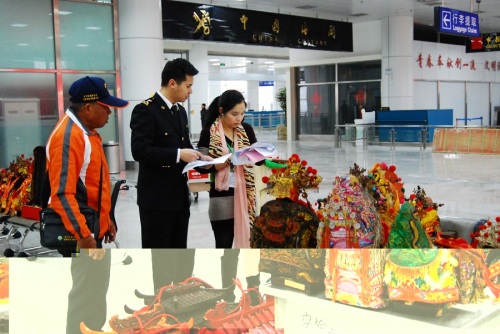 據(jù)了解,3月7日至8日,由金門(mén)縣政府組織的1200余名臺(tái)灣信眾分別通過(guò)廈金航線、泉金航線入境,前往漳州、泉州等地寺廟進(jìn)香,并在當(dāng)?shù)嘏e行一系列的踩街、祭典儀式。由于儀式需要,該批臺(tái)灣進(jìn)香團(tuán)入境時(shí)攜帶神轎28頂,神將46尊,神器124件。