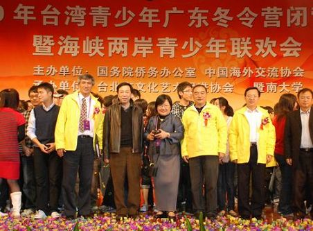 1月30日下午,由中國海外交流協(xié)會主辦,臺北市文化藝術(shù)促進(jìn)協(xié)會、暨南大學(xué)承辦的“2010年臺灣青少年廣東冬令營”在暨南大學(xué)禮堂閉營。閉營儀式上,營員們表演了臺灣特色的文藝節(jié)目,載歌載舞,盡情聯(lián)歡。中國海外交流協(xié)會文教部部長劉輝,冬令營營長、臺北市文化藝術(shù)促進(jìn)協(xié)會會長黃寤蘭,中國海外交流協(xié)會文教部副部長李民,暨南大學(xué)校領(lǐng)導(dǎo)胡軍、蔣述卓、賈益民、陸大祥、紀(jì)宗安、葉勤、周天鴻、林如鵬等出席閉營儀式。