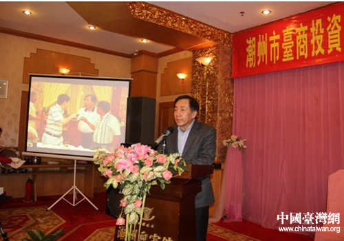 潮州市臺協(xié)會長詹豐瑜在會上致辭。(圖片來源:潮州市臺辦)