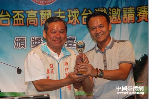 頒獎(jiǎng)晚宴在桃園中歷古華飯店舉行,贊助此次活動(dòng)的CTC董事長(zhǎng)涂博文、總經(jīng)理盧慶峰、東莞市臺(tái)協(xié)厚街分會(huì)會(huì)長(zhǎng)陳宏欽等參加。由于再興球場(chǎng)位于新竹縣境內(nèi),新竹縣長(zhǎng)邱鏡淳聞?dòng)嵑髮iT派議員盧東文,縣長(zhǎng)秘書石華平參加了晚宴,并給獲獎(jiǎng)選手贈(zèng)送了精美禮品。白瑞秋表示,感謝臺(tái)灣各界朋友的大力支持,感謝各位團(tuán)友的密切配合,期望相聚在下屆粵臺(tái)杯高爾夫球臺(tái)灣邀請(qǐng)賽。參賽球友們表示,此次活動(dòng)切磋了球技、交了朋友,為下一步合作交流打下了良好基礎(chǔ),希望能為兩岸和平發(fā)展做出自己的貢獻(xiàn)。(中國(guó)臺(tái)灣網(wǎng)、廣東省臺(tái)辦聯(lián)合報(bào)道)