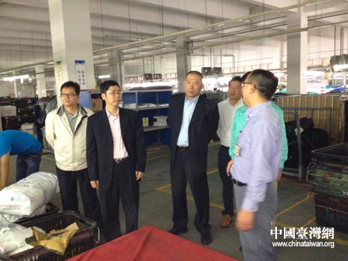 廣東省臺(tái)辦副主任陳林佐到中山市易惠日用制品有限公司調(diào)研。(圖片來源:中山市臺(tái)辦)