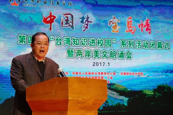 中國(guó)臺(tái)灣網(wǎng)1月12日河源訊 1月5日晚,河源市“臺(tái)灣知識(shí)進(jìn)校園”系列活動(dòng)閉幕式暨兩岸美文朗誦會(huì)在河職院隆重舉行。