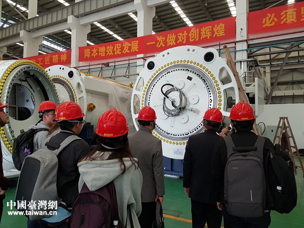 參觀中山明陽風電產(chǎn)業(yè)集團。(圖片來源:中山市臺辦)