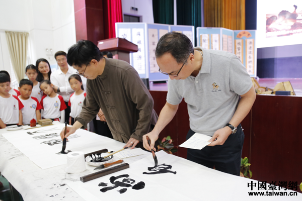 中國臺灣網(wǎng)11月20日廣州訊 近日,廣州市黃埔區(qū)臺辦舉行“對臺宣傳教育進學!被顒樱S埔區(qū)臺辦主任徐申泉,區(qū)教育局副局長許衛(wèi)民,市臺辦及市臺協(xié)黃埔分會工作人員,黃埔區(qū)書法家協(xié)會成員與東薈花園小學1800名師生參加了活動。