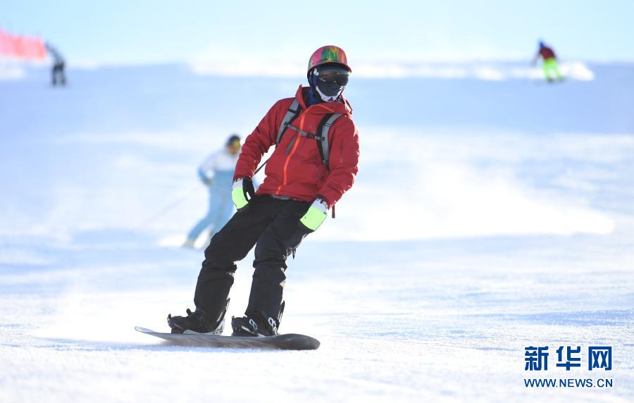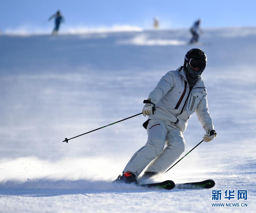 1月4日,滑雪愛好者新疆阿勒泰市將軍山滑雪場(chǎng)滑雪。新華社記者 沙達(dá)提 攝