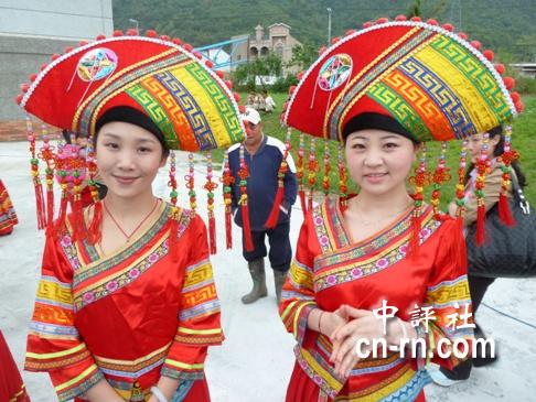 廣西團(tuán)美女穿著傳統(tǒng)服飾。