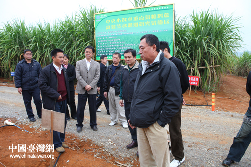 參訪團(tuán)考察江州區(qū)甘蔗高效節(jié)水灌溉項(xiàng)目建設(shè)示范基地。(圖片來源:崇左市臺(tái)辦)