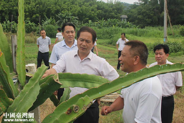 梧州市委書記全桂壽到岑溪市三堡鎮(zhèn)上海欣隆信息有限公司火龍果種植基地調(diào)研(圖片來源:廣西梧州岑溪市臺辦)