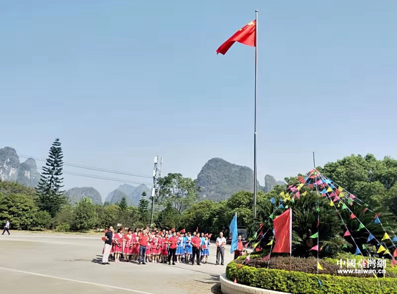 臺(tái)企桂林陽朔山水旅游開發(fā)有限公司開展升國旗、唱國歌活動(dòng)(圖片來源:廣西桂林市陽朔縣臺(tái)辦)