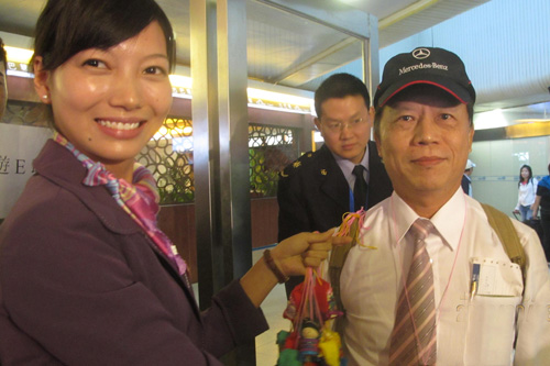 市委常委、副市長周道許到機場迎接遠(yuǎn)道而來的臺灣游客。大家敲響鑼鼓,舞起彩獅,讓臺灣游客一下飛機就感受到貴陽人的熱情。