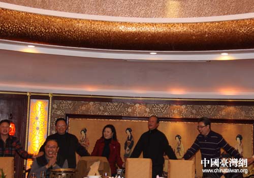 餐敘始終洋溢著歡快而和諧的氣氛,言至歡處,臺(tái)屬政協(xié)委員周榮、港澳政協(xié)委員魏鳳英、孫重貴等不由自主地為大家演唱起了《我是中國(guó)人》、《我愛我的祖國(guó)》、《難忘今宵》等歌曲,大家也禁不住手拉著手齊唱起《我們都是一家人》,餐敘在一片歡聲笑語(yǔ)中結(jié)束。
