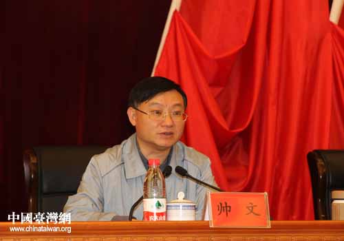 帥文充分肯定去年全市對(duì)臺(tái)工作,他指出,2011年,全市各級(jí)各部門和對(duì)臺(tái)工作系統(tǒng)認(rèn)真貫徹中央對(duì)臺(tái)工作方針政策,推動(dòng)對(duì)臺(tái)工作不斷創(chuàng)新發(fā)展,如成功舉辦“筑臺(tái)兩地中醫(yī)藥文化研討暨項(xiàng)目推介會(huì)”、“在臺(tái)筑籍新娘爽爽貴陽(yáng)行”和“筑臺(tái)兩地書畫藝術(shù)交流展”等大型涉臺(tái)交流活動(dòng),完成《從陽(yáng)明文化看筑臺(tái)情緣》專題片的拍攝和“貴陽(yáng)市小河經(jīng)濟(jì)技術(shù)開發(fā)區(qū)系列報(bào)道”工作,為推動(dòng)兩岸關(guān)系和平發(fā)展作出了積極貢獻(xiàn)。