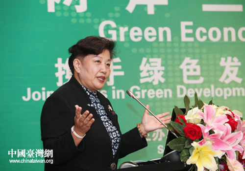 中國民族貿(mào)易促進(jìn)會執(zhí)行會長劉延寧女士作題為《現(xiàn)代正義觀與綠色中國》的主題演講。(貴陽市臺辦 胡珊珊 攝)