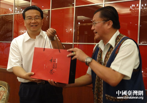 中國(guó)臺(tái)灣網(wǎng)8月7日貴陽(yáng)消息 日前,貴州省委常委、省委統(tǒng)戰(zhàn)部部長(zhǎng)劉曉凱在貴陽(yáng)會(huì)見(jiàn)由臺(tái)灣少數(shù)民族生存發(fā)展協(xié)會(huì)理事長(zhǎng)孔文吉博士率領(lǐng)的臺(tái)灣少數(shù)民族交流團(tuán)一行。