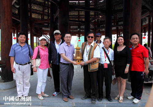 中國臺灣網(wǎng)8月10日從江消息 為促進(jìn)海峽兩岸的文化交流與合作,進(jìn)一步加深兩岸友誼,應(yīng)全國臺聯(lián)的邀請,臺灣民意代表孔文吉一行34人專程到貴州參訪。為了讓參訪團(tuán)在從江順利開展民族文化交流活動,使他們了解從江少數(shù)民族風(fēng)情,加深兩岸民族的兄弟情,參訪團(tuán)一行參觀苗侗風(fēng)情。