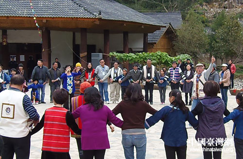 中國(guó)臺(tái)灣網(wǎng)11月15日安順消息 2012年11月12日,美麗格凸河,風(fēng)含情水含笑,喜迎臺(tái)灣嘉賓。“安臺(tái)兩地少數(shù)民族歡歌會(huì)”在人間仙境—大河苗寨盛大舉行。聯(lián)歡現(xiàn)場(chǎng),兩地少數(shù)民族同胞表演了具有濃厚民族特色的節(jié)目,抒發(fā)他們對(duì)彼此之間的祝福和感謝。