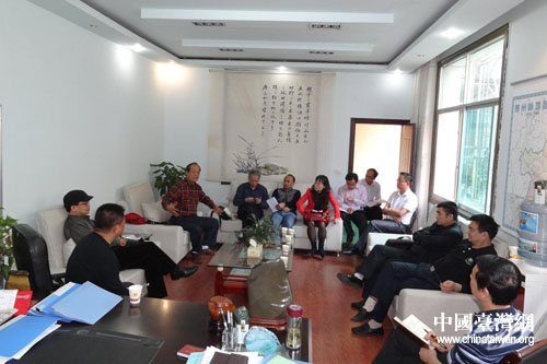 州臺辦領導、副縣長黃元智向臺商介紹景區(qū)開發(fā)規(guī)劃情況。(黔南州臺辦 吳建國 攝)