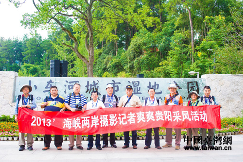中國臺灣網(wǎng)8月28日貴陽消息 8月8日,參加“2013’海峽兩岸攝影記者爽爽貴陽采風(fēng)活動”的攝影記者們來到貴陽市小車河城市濕地公園,用手中的像機(jī)全程記錄了“2013中國·貴州‘九黎十八寨’民族博覽會”啟動儀式。