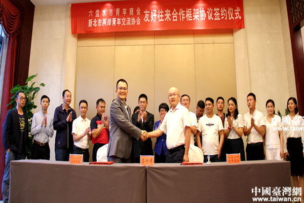 見面會(huì)后,六盤水市青年商會(huì)與新北兩岸青年交流協(xié)會(huì)簽訂了友好往來合作框架協(xié)議書。(中國臺(tái)灣網(wǎng)六盤水市臺(tái)辦通訊員 任學(xué)高)