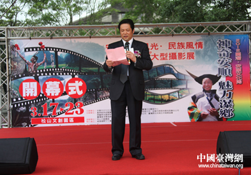 中國臺灣網(wǎng)3月22日臺北消息 日前,2012“安順·臺灣文化周暨貴州安順山水風(fēng)光—林藝斌360度大型攝影展”在臺北市松山文化創(chuàng)意園區(qū)隆重開幕。中國國民黨榮譽黨主席吳伯雄、臺灣“法務(wù)部門負責(zé)人”曾勇夫、臺灣民意代表孔文吉、國民黨中常委李德維、臺北市原副市長李永萍、臺灣日出藝術(shù)中心負責(zé)人林藝斌、臺灣貴州同鄉(xiāng)會理事長申玉玲以及臺灣經(jīng)濟、文化、旅游各界人士近200余人應(yīng)邀出席活動。