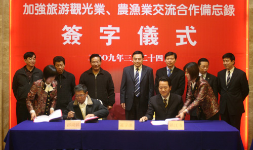 中國臺灣網(wǎng)3月25日鎮(zhèn)江消息 3月24日晚,江蘇省鎮(zhèn)江市農(nóng)學(xué)會、鎮(zhèn)江市旅游協(xié)會分別與應(yīng)邀來訪的臺灣無黨團結(jié)聯(lián)盟主席、澎湖縣兩岸交流協(xié)會理事長林炳坤先生簽訂了加強農(nóng)漁業(yè)、旅游觀光業(yè)交流合作備忘錄。這是澎湖縣兩岸交流協(xié)會與大陸民間在農(nóng)漁業(yè)、旅游觀光業(yè)方面的首次合作。