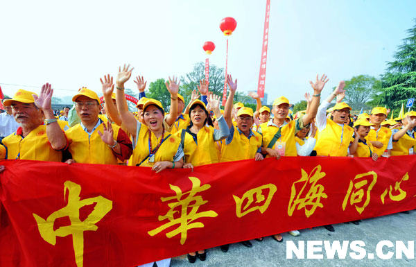 10月16日,臺(tái)灣客家后裔在第十五屆世界客屬石壁祖地祭祖大典上。