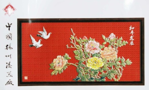 海基會(huì)表示,“安和升祥”紀(jì)念瓶,浮雕了兩只拙樸可愛的鵪鶉,仰望著上方結(jié)實(shí)、飽滿的兩串稻米。鵪鶉是古代繪畫常見的吉祥鳥獸;稻米結(jié)實(shí)累累,象征豐足的太平盛世。鵪鶉與稻禾相伴,取其諧音“安和”之意,代表對(duì)兩岸安定、和平的期盼。海協(xié)會(huì)贈(zèng)給;鶗(huì)的紀(jì)念品是揚(yáng)州漆器畫作,名為“和平發(fā)展”。它以寶石及揚(yáng)州漆器雕砌出一幅牡丹圖,陳云林說是“和平花”。