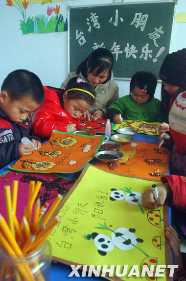 12月31日,山東省郯城縣馬頭鎮(zhèn)中心幼兒園小朋友展示制作的“五谷賀卡”。新年來臨,郯城縣馬頭鎮(zhèn)中心幼兒園小朋友在老師指導(dǎo)下,用五谷制作“新年賀卡”,祝福臺(tái)灣小朋友新年快樂。新華社發(fā)(房德華 攝)