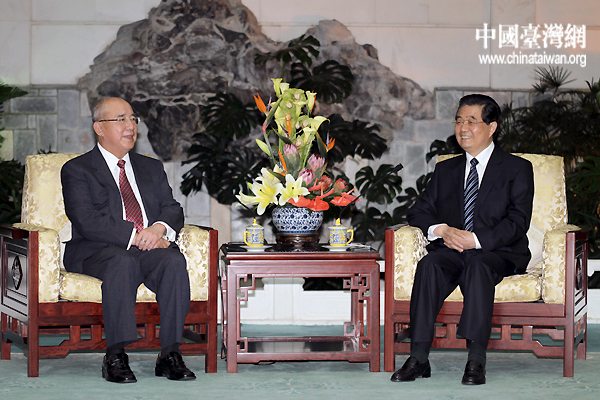 7月12日下午,中共中央總書記胡錦濤在北京釣魚臺賓館會見了中國國民黨榮譽(yù)主席吳伯雄一行。(中國臺灣網(wǎng) 田云鵬 攝)