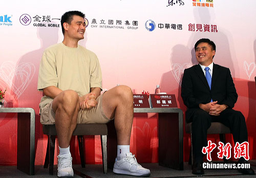 “2010姚基金慈善之旅”7月27日在臺北舉行記者會,姚明與臺北市長郝龍斌等出席。據悉,由臺灣和上海組成的心連心隊與美國職業(yè)籃球明星隊,將于28日在臺北小巨蛋舉行表演賽,姚明希望球迷通過欣賞精彩的比賽,加入公益活動行列。中新社發(fā) 宋吉河 攝