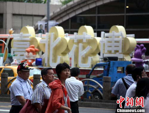 10月6日,臺(tái)北花博會(huì)臨近,花博會(huì)廣告現(xiàn)身臺(tái)北街頭。圖為臺(tái)北火車站附近街頭的廣告。中新社記者 陳立宇 攝