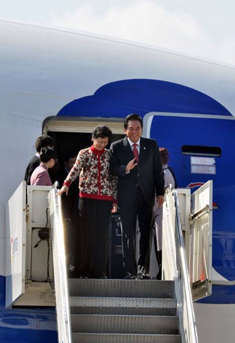 大陸海峽兩岸關(guān)系協(xié)會(huì)會(huì)長(zhǎng)陳云林等人,20日中午搭機(jī)抵達(dá)桃園機(jī)場(chǎng)。陳云林直接下機(jī),他向守候媒體及接機(jī)人員揮手。海峽交流基金會(huì)副董事長(zhǎng)高孔廉等人前往接機(jī),現(xiàn)場(chǎng)并有大批媒體守候。 “中央社”圖