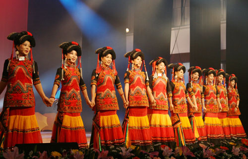 苗栗縣府邀請彝族自治區(qū)的涼山州歌舞團,1日、2日兩晚在苗栗縣文化局演出,并免費開放民眾欣賞,1日晚7時整,近百名團員、舞者輪番上陣,不僅有男女群舞、獨唱,還有彝族民間器樂演奏、川劇民俗表演、原生態(tài)演唱等,演出者不時還與臺下觀眾互動,氣氛熱絡。