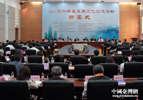 中國(guó)臺(tái)灣網(wǎng)11月3日湛江消息 11月3日上午,主題為“傳承閩南文化,促進(jìn)湛臺(tái)合作”的2011雷州半島閩南文化交流活動(dòng)在廣東湛江師范學(xué)院舉行開(kāi)幕儀式。廣東省臺(tái)辦副主任蔣長(zhǎng)芳、湛江市政府副市長(zhǎng)陳岸明、湛江市政協(xié)副主席黃雪艷,和來(lái)自臺(tái)灣、廣東、北京等地的專家學(xué)者、企業(yè)家等共160多人參加了開(kāi)幕式。